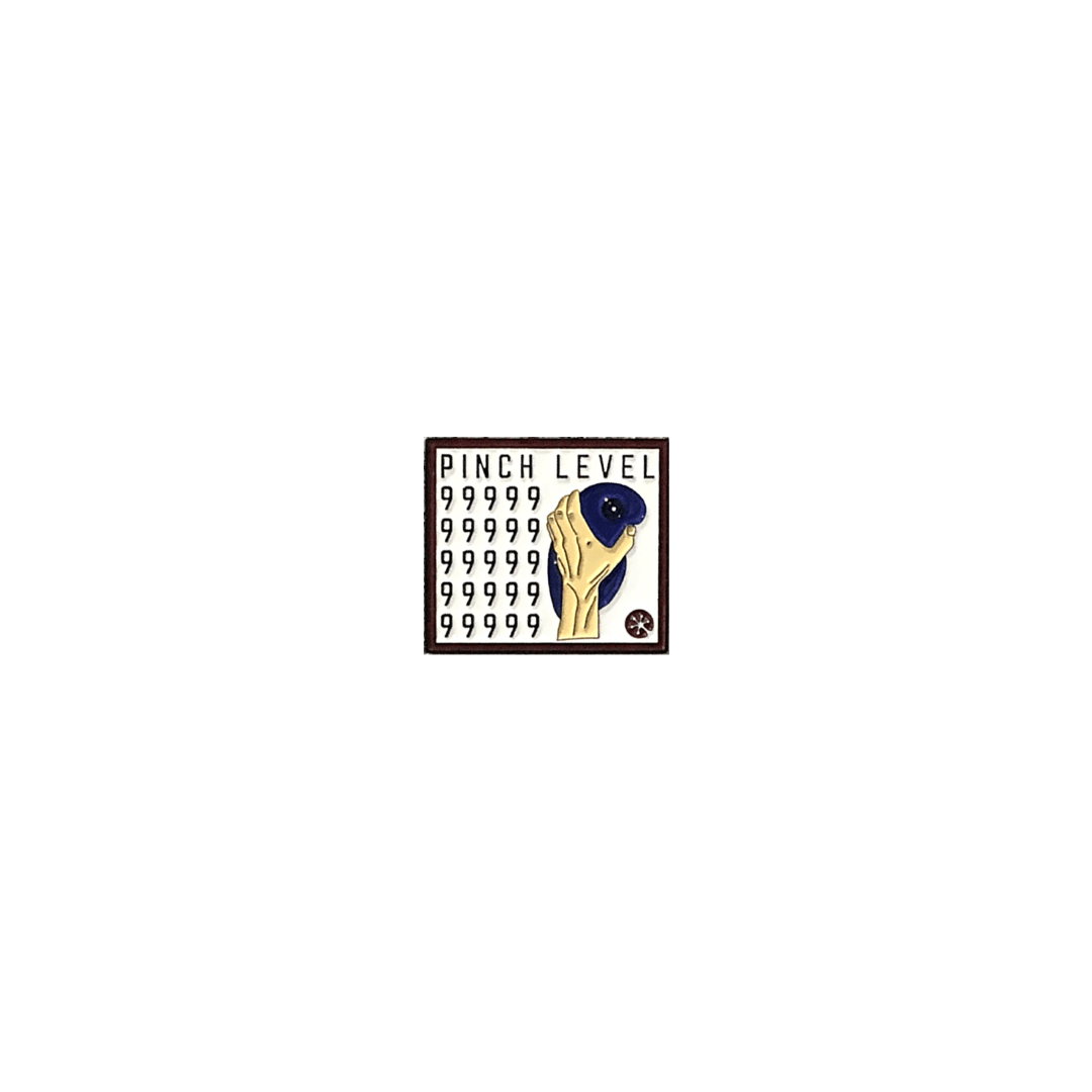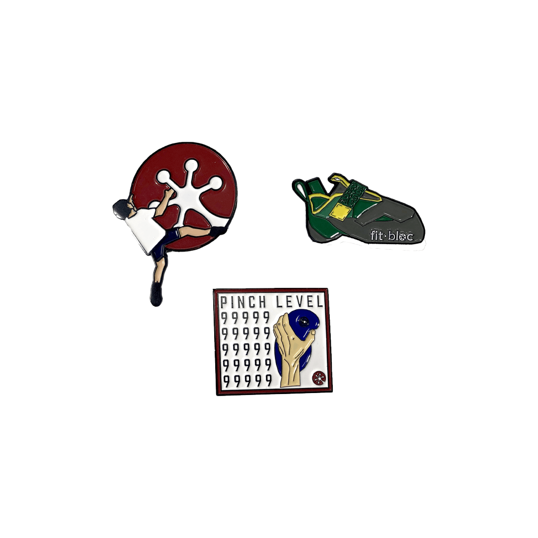 You Love It, You Hate It: The second design is an attempt to put our love-hate relationship with pinches onto the pin. They say we have to embrace our most hated hold to be able to get the pinch level 99999 that’s embossed on this pin. Who knows, having this on your chalk bag before getting onto your next project might give you some extra pinch power?